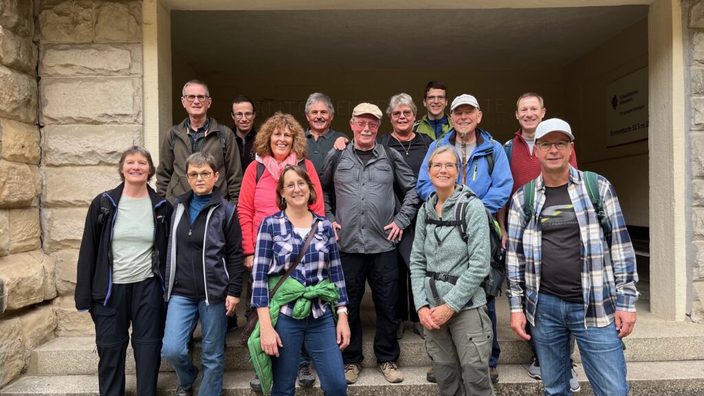 Die diesjährige Herbstwanderung führte 14 unternehmungslustige TT’ler am 12.10. ins schöne Uhlbach. Nachdem die Anfahrt mit S-Bahn und Bus gemeistert war, ging es auf Schusters Rappen hinaus in die schönen Weinberge östlich von Stuttgart. Nach einer guten Stunde erreichten wir den Kernerturm, von dem aus man eine hervorragende Aussicht genießen kann – sofern man auf der Wendeltreppe zuvor dem sich auf Kopfhöhe befindlichen Stahlträger ausgewichen ist… Glücklicherweise ohne bleibende Schäden marschierten wir fröhlich weiter und genossen immer wieder schöne Ausblicke ins Neckartal und in die Landeshauptstadt hinüber.